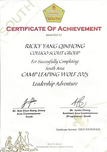 During the March 2025 school holidays, I was selected by Colugo Scout Pack to join the Cub Scout Leadership Camp (CSLC) – Camp Leaping Wolf 2025. This event gave me another opportunity to develop my leadership skills, learn to serve and care for others, and find new and meaningful ways to make a positive impact in my community. I’m grateful for all that I’ve learned through Scouts, and this experience has made me even more confident and committed as a young leader. Read my experience here.